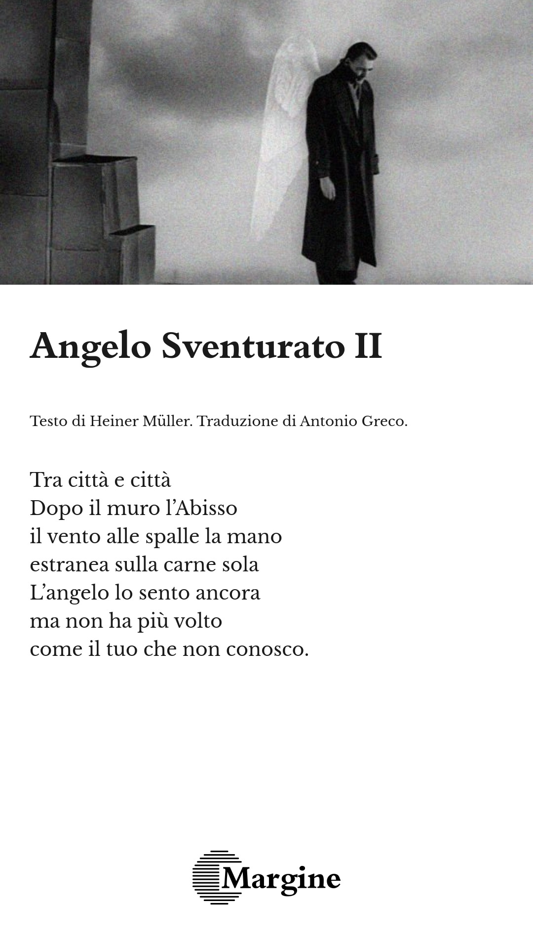 H. Müller, Glückloser Engel 2 (1991), in: Die Gedichte. Werke 1, a cura di Frank Hörnigk, Suhrkamp, 1998.