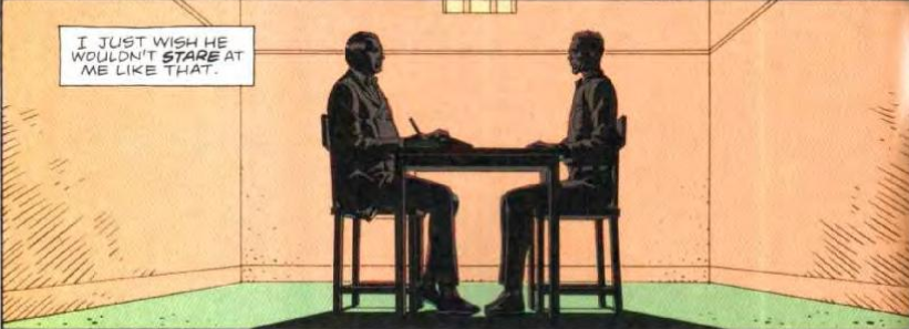 Nel corso delle altre sedute Walter rivela come, cominciando a fare il supereroe, all’inizio cercasse solo di catturare i criminali e non di giustiziarli, ma un caso in particolare lo trasformò completamente nel vigilante spietato che faceva tremare il mondo criminale, rinchiuso ora a Sing Sing. Rorschach spiega di aver cominciato a ragionare così in seguito a due eventi cruciali.