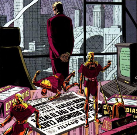 Da quel giorno Adrian Veidt decise cha anche lui avrebbe progettato un piano di conquista, ma non del mondo, ma del male che lo attanagliava.