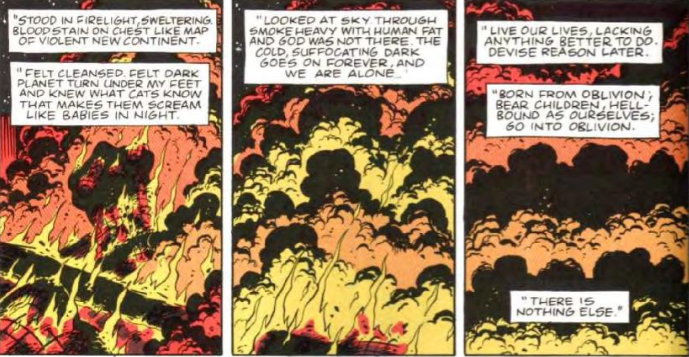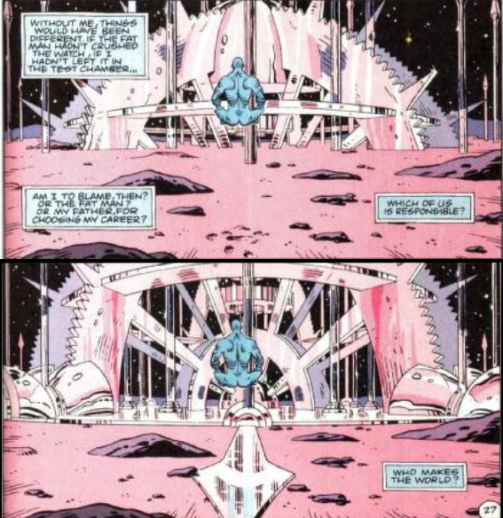 «La vera domanda che Watchmen pone è: chi fa il mondo? Chi è responsabile per il modo in cui il mondo è? Molte cose sono pianificate, ma molto è causato puramente dal caso.»4