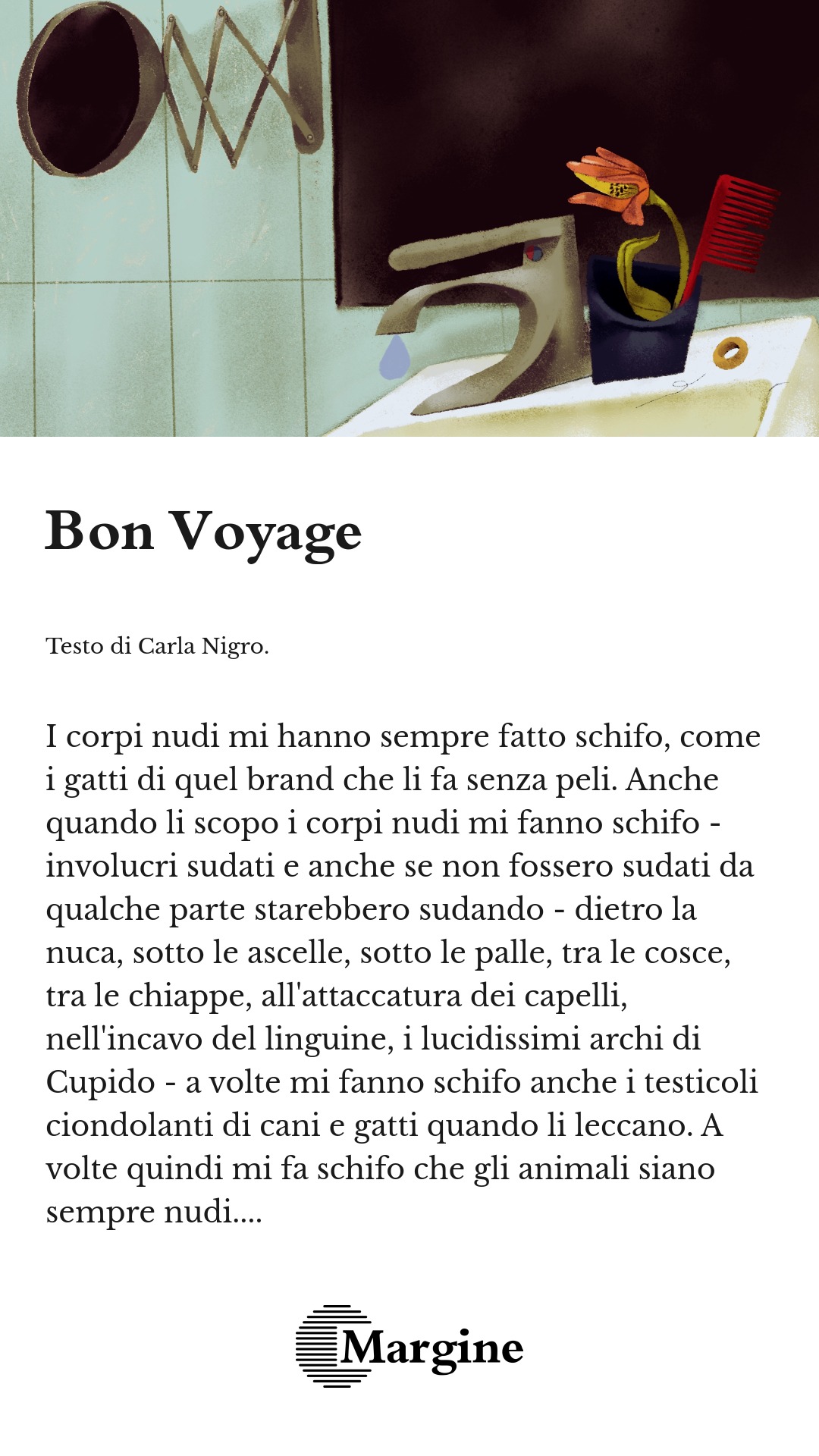 I corpi nudi mi hanno sempre fatto schifo, come i gatti di quel brand che li fa senza peli. Anche quando li scopo i corpi nudi mi fanno schifo - involucri sudati e anche se non fossero sudati da qualche parte starebbero sudando - dietro la nuca, sotto le ascelle, sotto le palle, tra le cosce, tra le chiappe, all’attaccatura dei capelli, nell’incavo del linguine, i lucidissimi archi di Cupido - a volte mi fanno schifo anche i testicoli ciondolanti di cani e gatti quando li leccano. A volte quindi mi fa schifo che gli animali siano sempre nudi.
